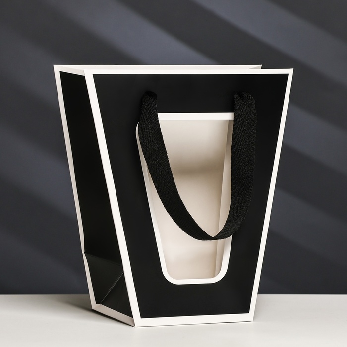 Пакет-переноска для цветов 10 × 10 × 20 х 18 см, черный с каймой