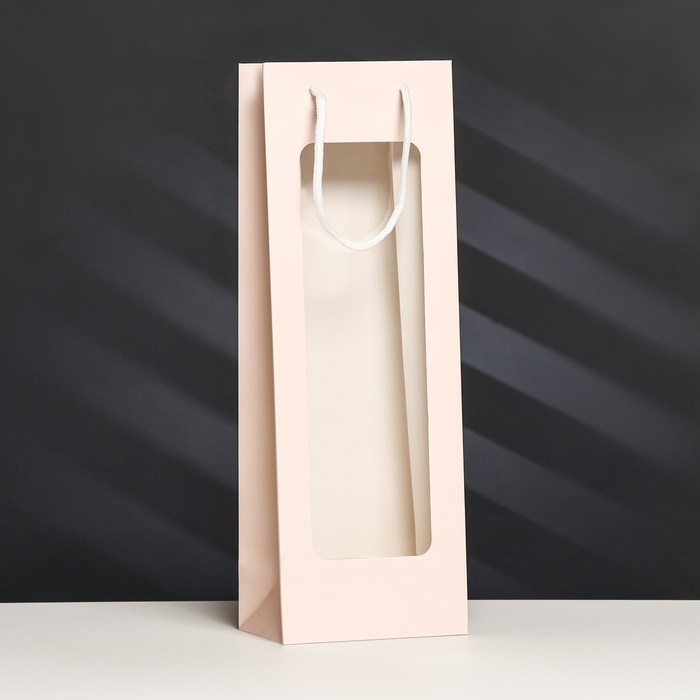 Пакет-переноска для цветов с PVC окном 12,5 × 8,5 × 36 см, розовый