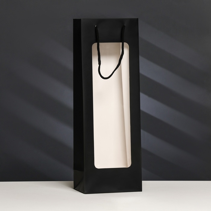 Пакет-переноска для цветов с PVC окном 12,5 × 8,5 × 36 см, черный
