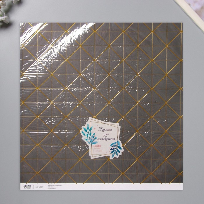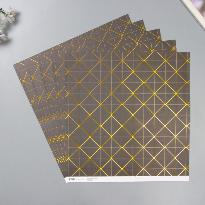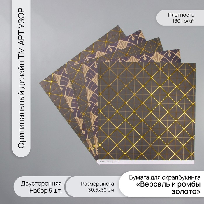 Бумага для скрапбукинга двусторонняя "Версаль и ромбы золото" плотность 180 гр набор 5 шт 30,5х32 см