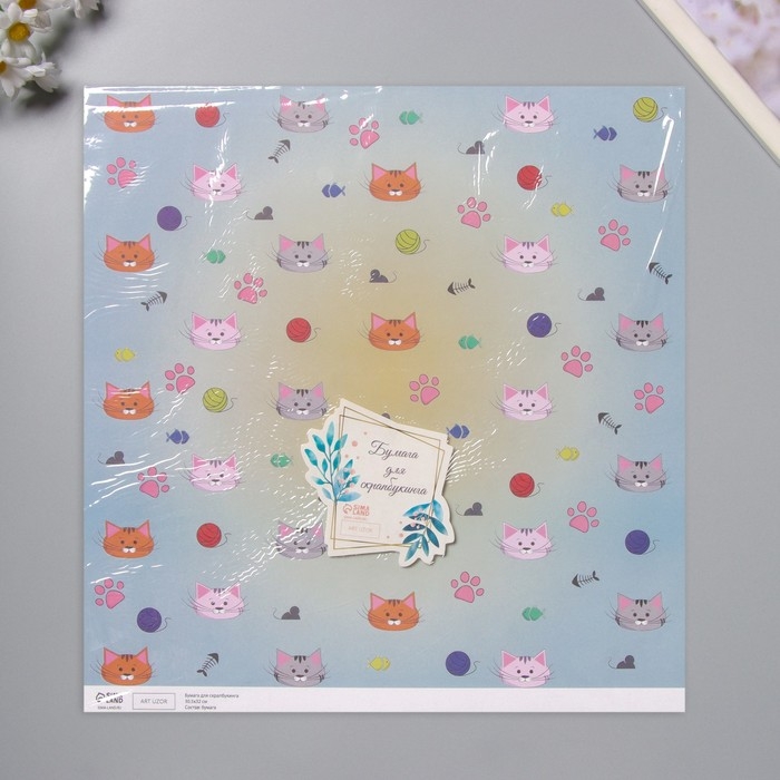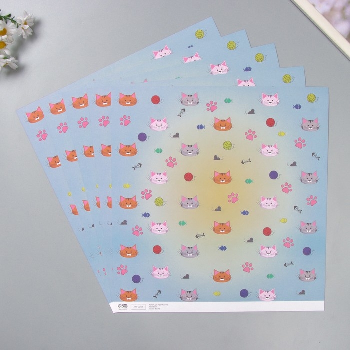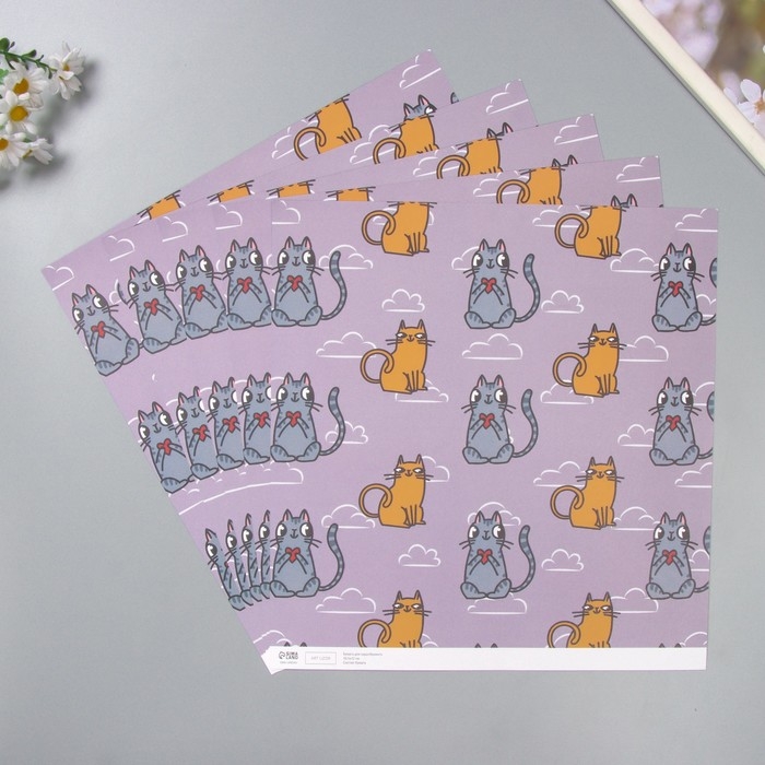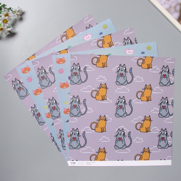 Бумага для скрапбукинга двусторонняя "Котики" плотность 180 гр набор 5 шт 30,5х32 см