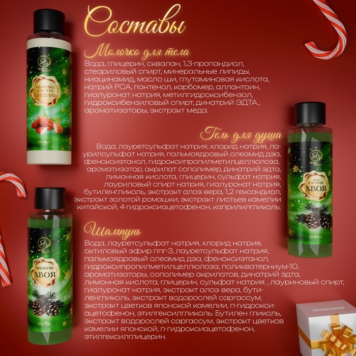 Новогодний набор — это идеальное сочетание продуктов для полноценного ухода за телом, которые дарят ощущение роскоши и заботы. Он идеально подойдёт как подарок на Новый год, который подчеркнёт ваше внимание и любовь к близким.