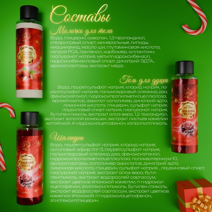 Новогодний набор — это идеальное сочетание продуктов для полноценного ухода за телом, которые дарят ощущение роскоши и заботы. Он идеально подойдёт как подарок на Новый год, который подчеркнёт ваше внимание и любовь к близким.