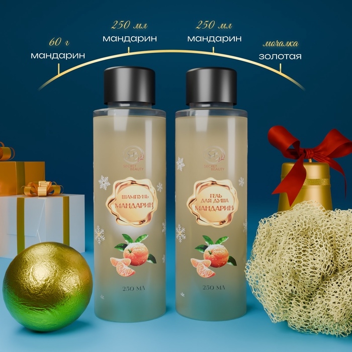 - Гель для душа 250 мл "Мандарин" — его нежная текстура мягко очищает кожу, создавая приятные ощущения свежести и комфорта. Ароматный шлейф геля наполняет душу ощущением праздника, а кожа остаётся увлажнённой и бархатистой на ощупь.