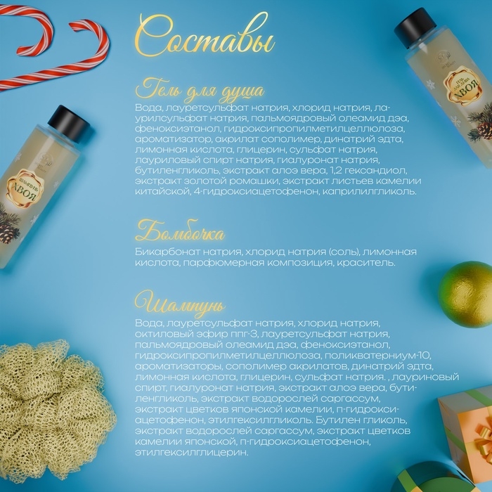 - Гель для душа 250 мл "Хвоя"— его нежная текстура мягко очищает кожу, создавая приятные ощущения свежести и комфорта. Ароматный шлейф геля наполняет душу ощущением праздника, а кожа остаётся увлажнённой и бархатистой на ощупь.