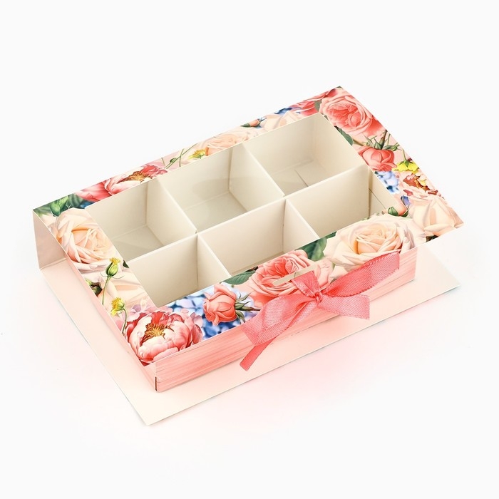 Коробка под 6 конфет с ячейками «Подарок» 14.8 х 9.5 х 3.5 см