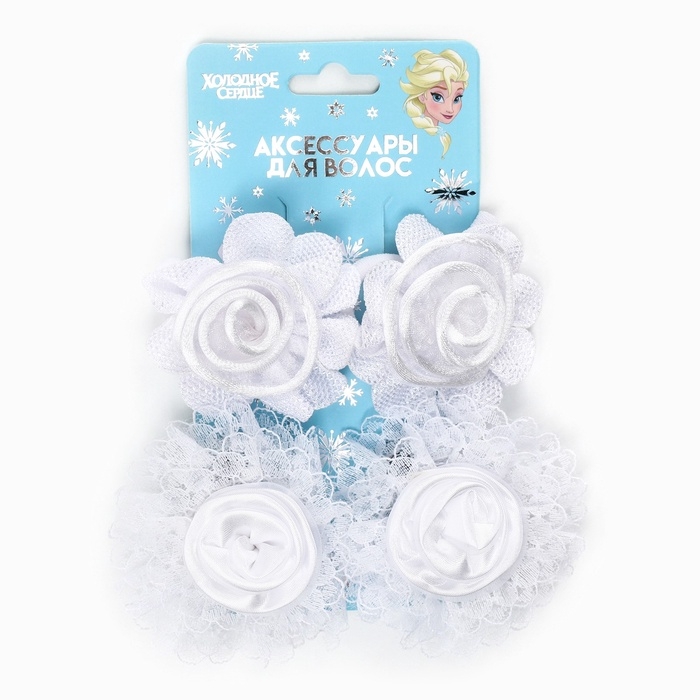 Бант для волос на резинке 2 шт, заколка зажим для волос 2 шт, набор, Холодное сердце