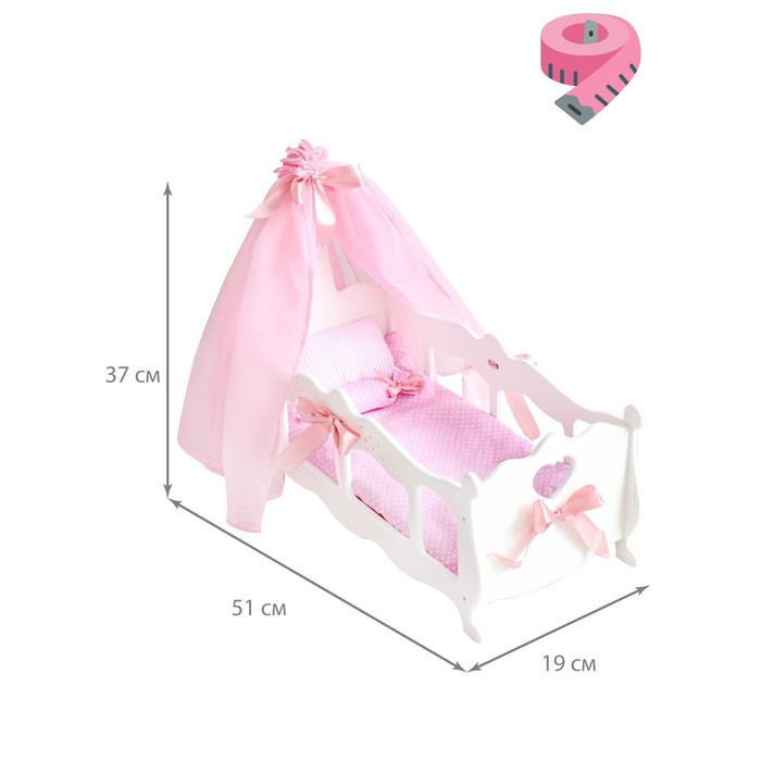 Кроватка для кукол с постельным бельем и балдахином, коллекция «Diamond princess» белый