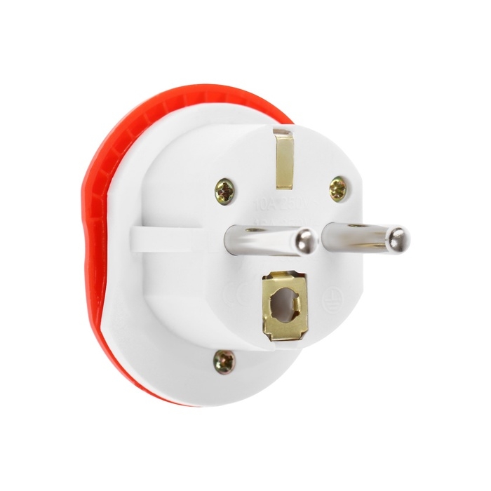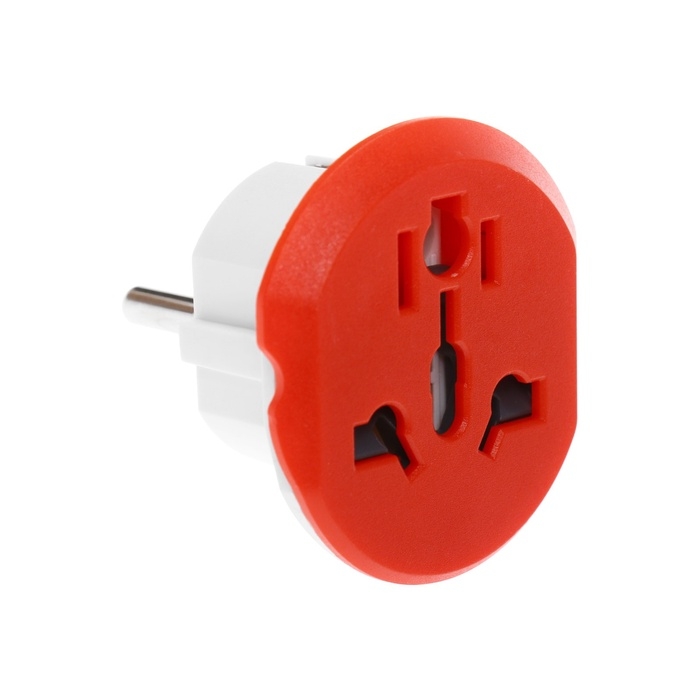 Переходник универсальный 16А, с з/к, 220 В, красный, заподлицо в розетку