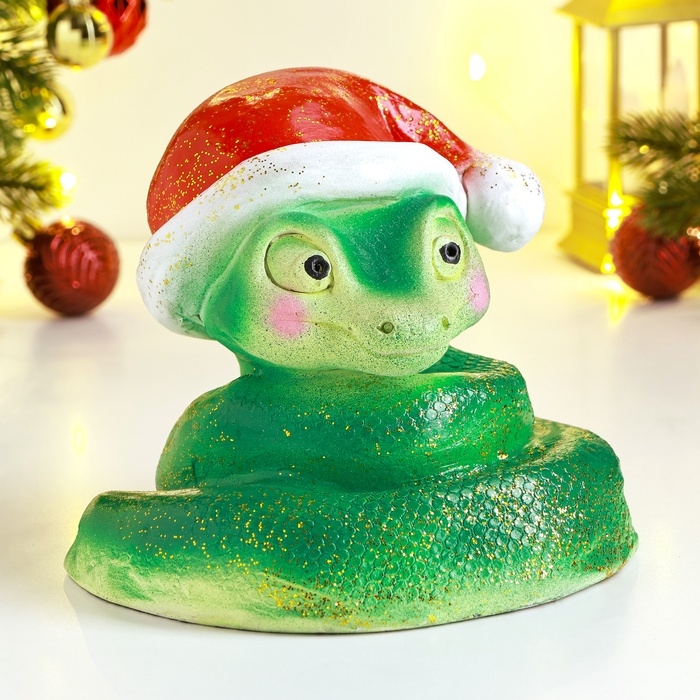 Новый год. Символ 2025. Копилка "Змея в колпаке" 17х14х15см, цветная