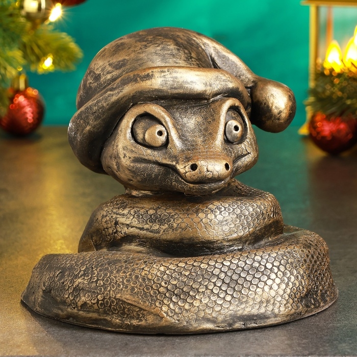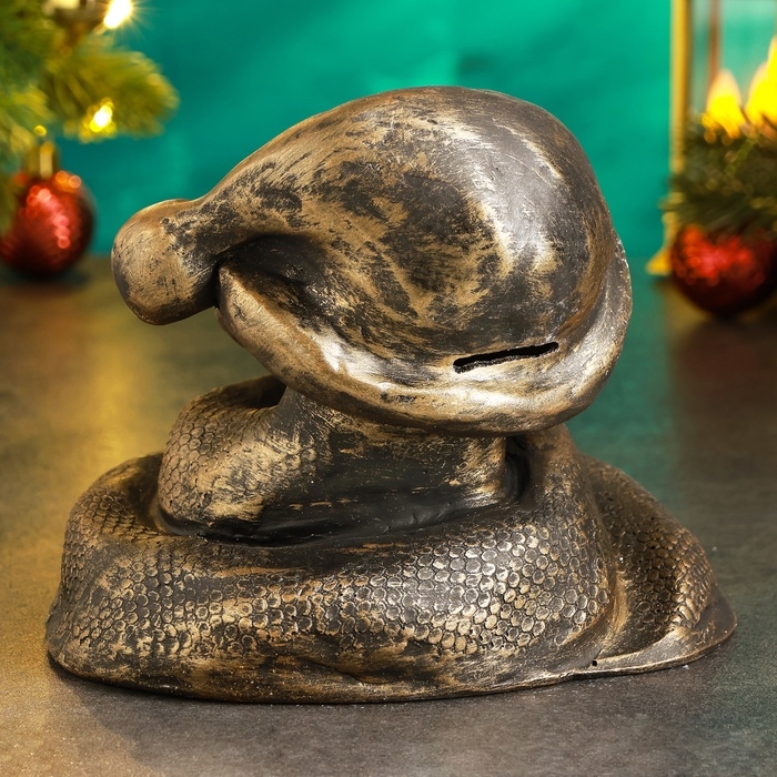 Новый год. Символ 2025. Копилка "Змея в колпаке" 17х14х15см, бронза