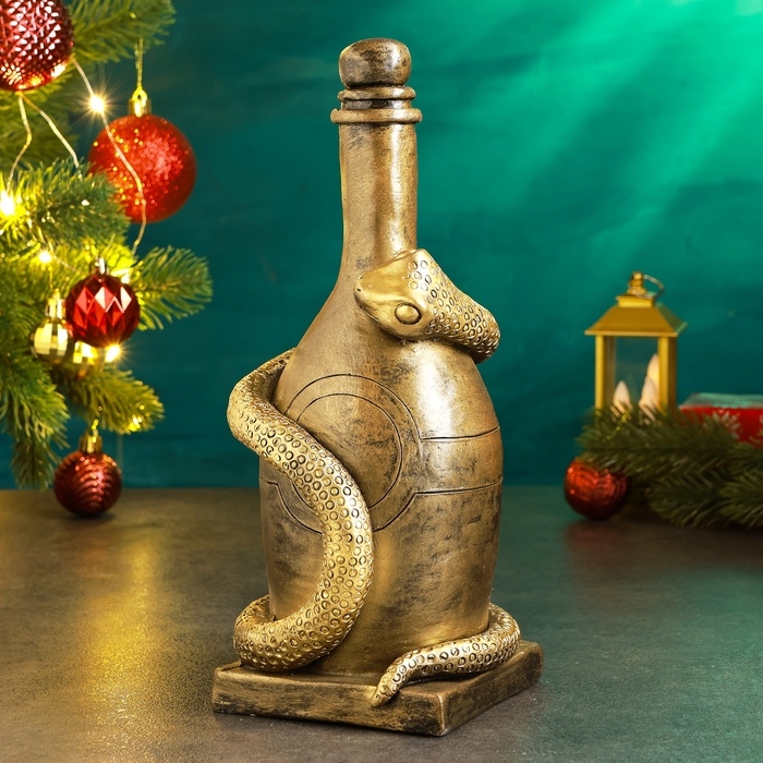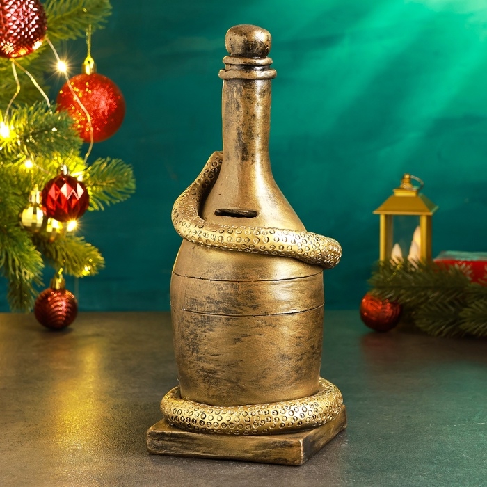 Новый год. Символ 2025. Копилка "Змея с бутылкой" 12х12х27см, бронза