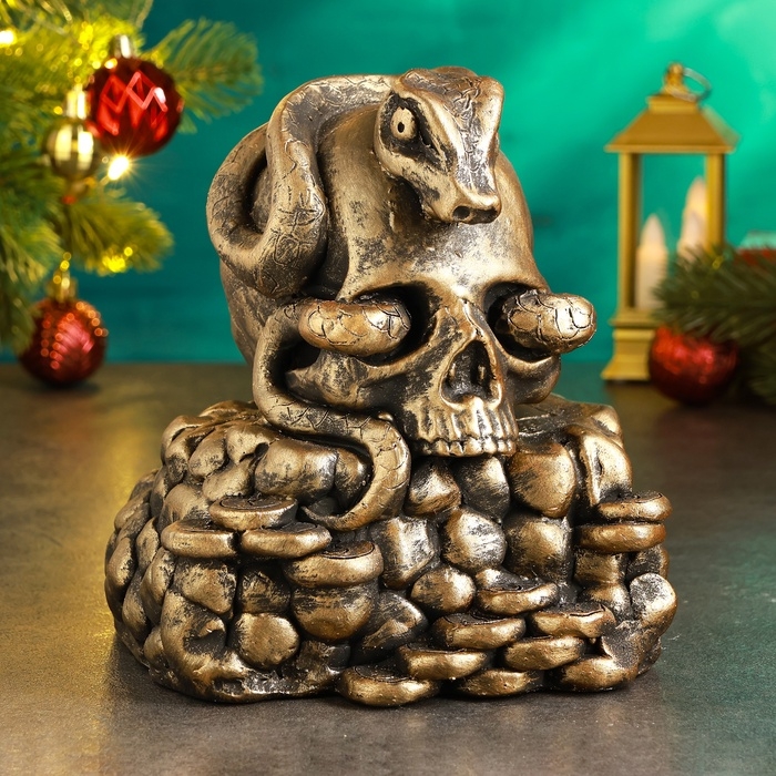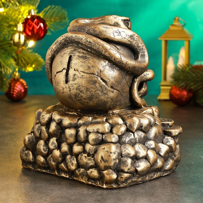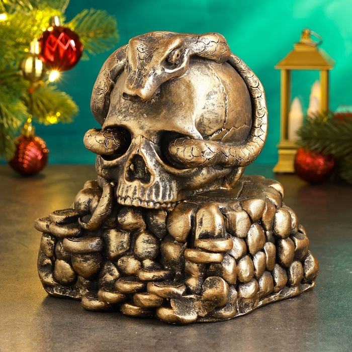 Новый год. Символ 2025. Копилка "Змея в черепе" 15х15х18см, бронза