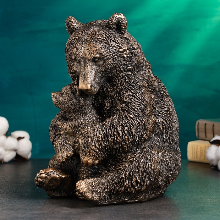 Копилка "Медведица с медвежонком" 20х23х30см, бронза