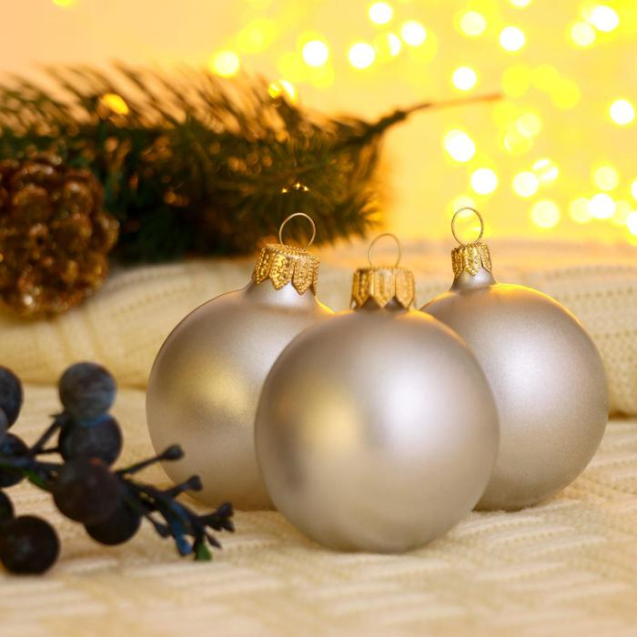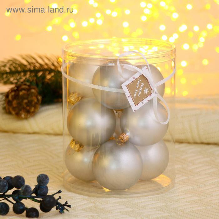 Набор шаров d- 5 cм, 9 шт "Сияние" серебро