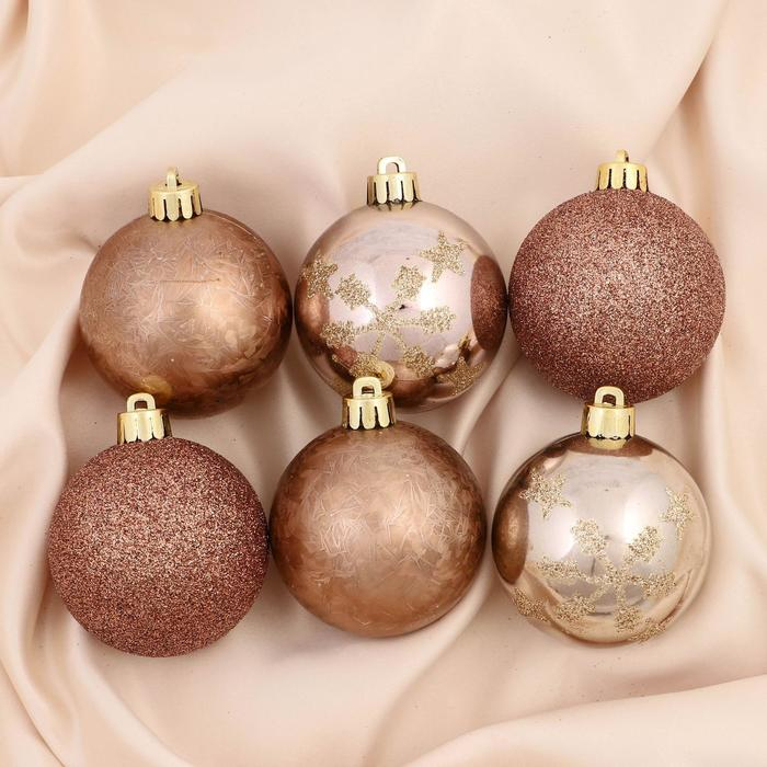 Набор шаров пластик d-6 см, 12 шт "Женева" коричневый