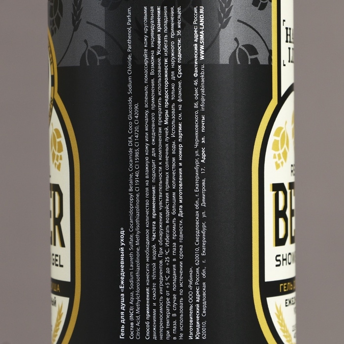 Гель для душа во флаконе пиво, 400 мл, HARD LINE