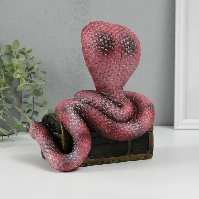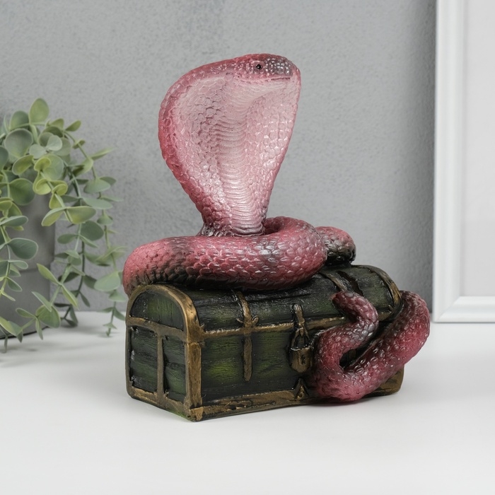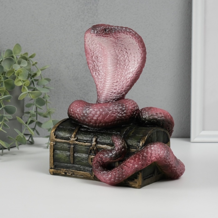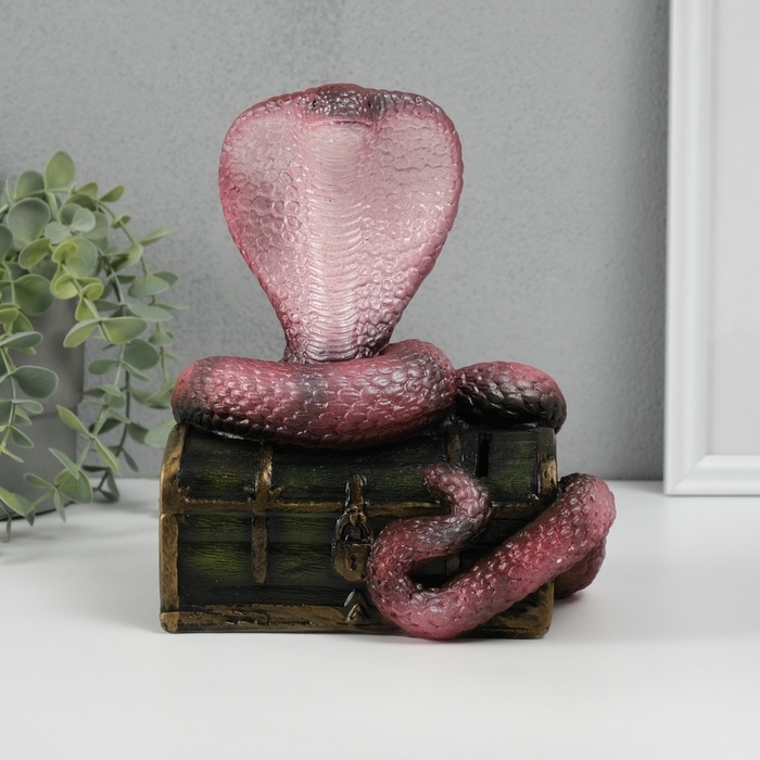 Новогодняя копилка "Кобра на сундуке " 20 х 17 х 12 см, бордовый