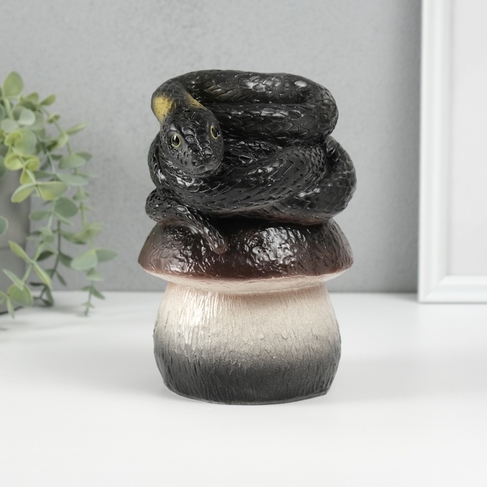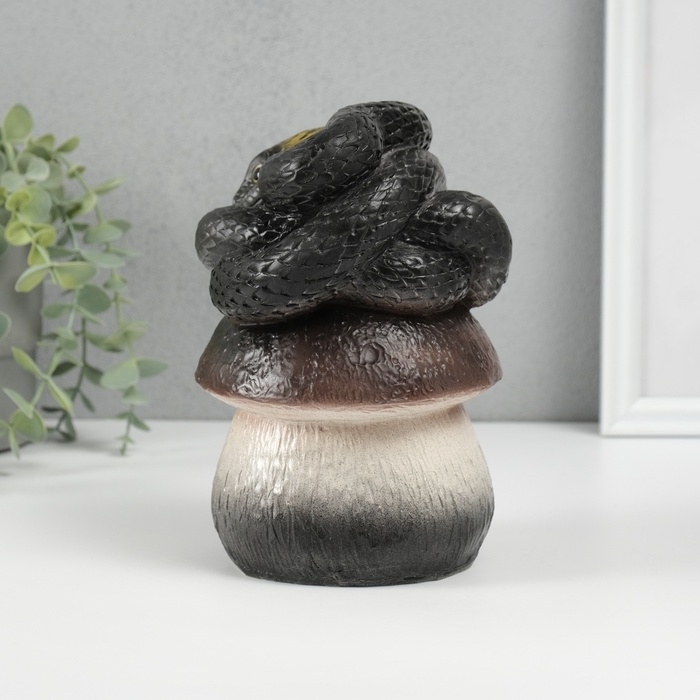 Новогодняя фигурка "Змейка на грибе" 12 х11 х 18 см, черный