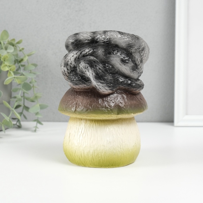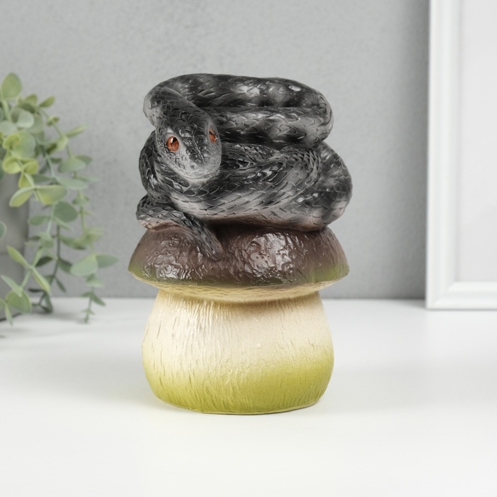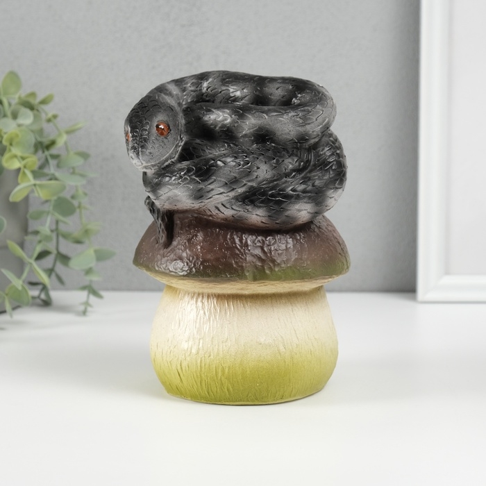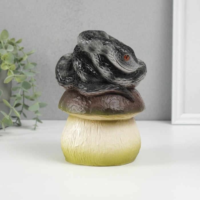 Новогодняя фигурка "Змейка на грибе" 12 х11 х 18 см, черно-серый