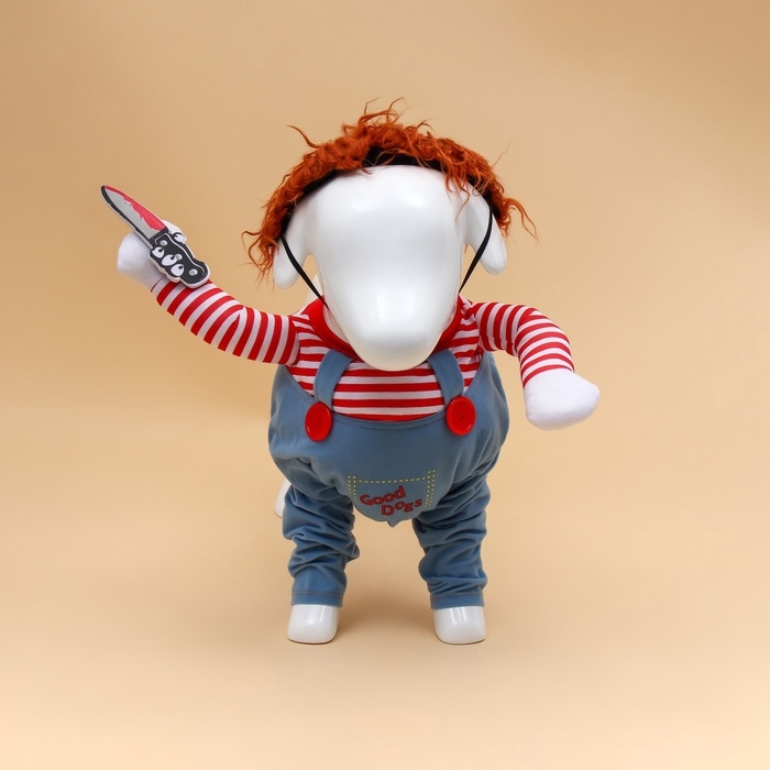 Уникальный дизайн: Костюм "Маньяк" отличается оригинальным и забавным дизайном, который точно привлечет внимание прохожих. Яркие и контрастные детали делают его стильным аксессуаром для вашего любимца.