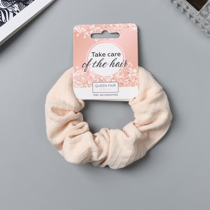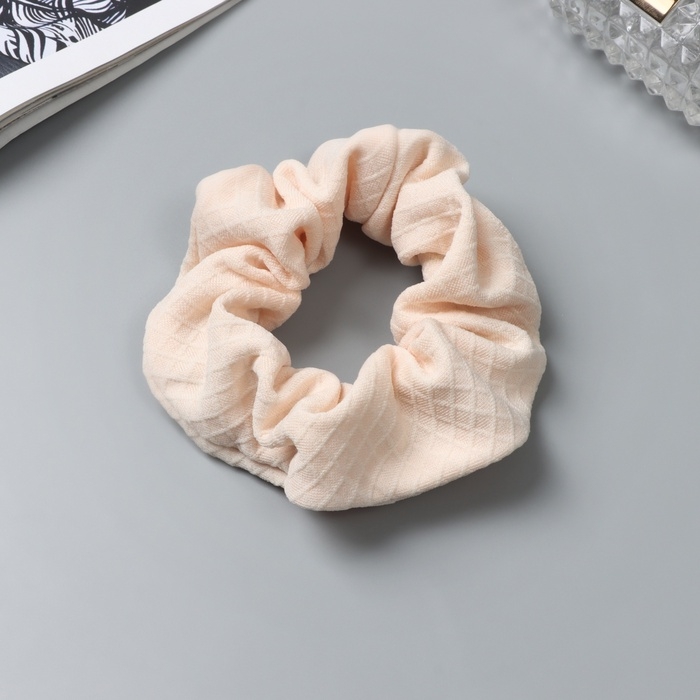 Резинка для волос "Орбита" классик текстура клетка, 10 см, бежевый