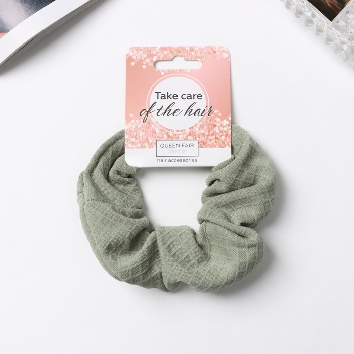 Резинка для волос "Орбита" классик текстура клетка, 10 см, зелёный
