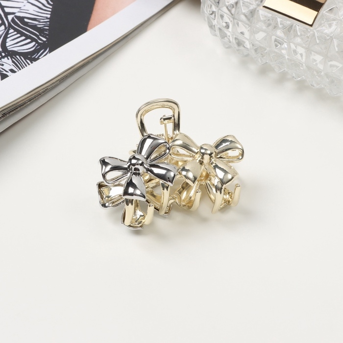 Краб для волос "Хизер" бантики, 4,5 см, золото-серебро