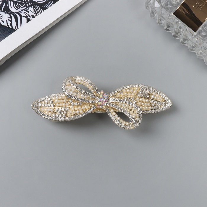 Заколка-автомат для волос "Ливия" бант лепестки, 8,5 см, золото