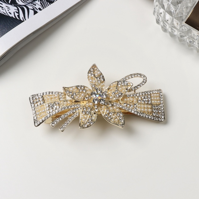 Заколка-автомат для волос "Ливия" цветок стиль, 8,5 см, золото