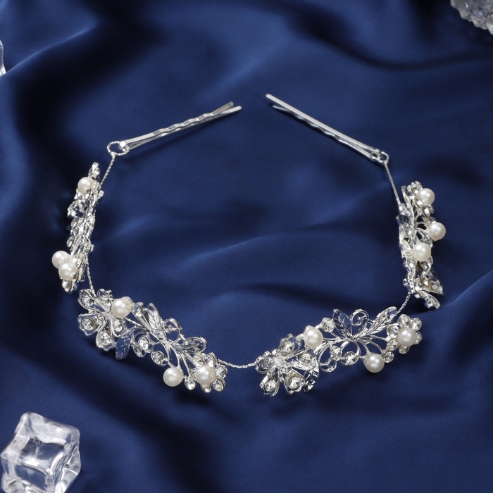 Аксессуар для волос "Джуди" цветочный стиль, 26 см, серебро