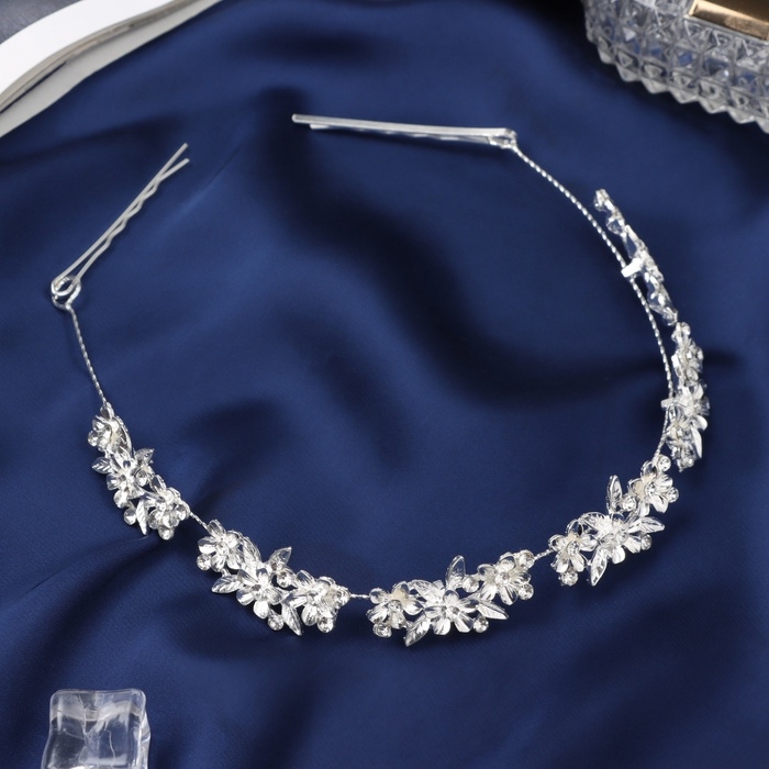 Аксессуар для волос "Джуди" лепестки галант, 26 см, серебро