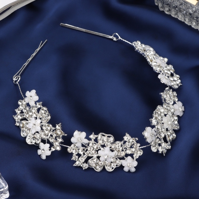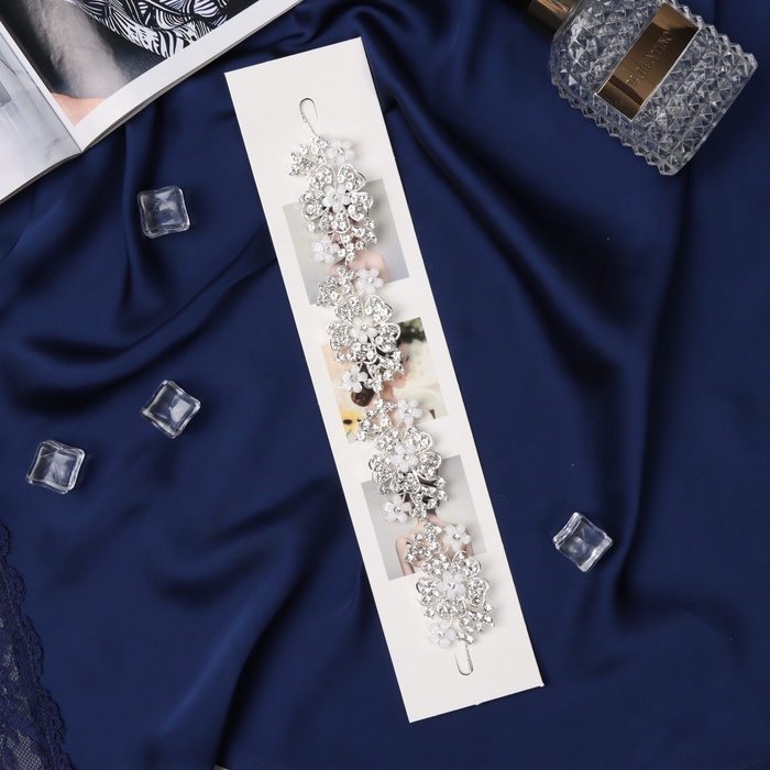 Аксессуар для волос "Леона" цветочный, 26 см, серебро