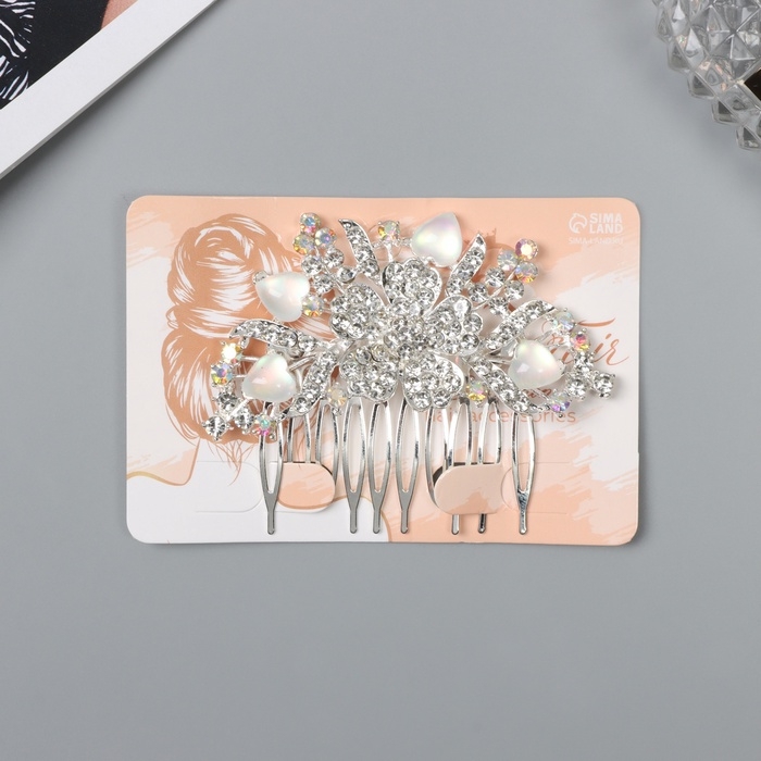 Гребень для волос "Джуди" цветок, 8х6 см, серебро