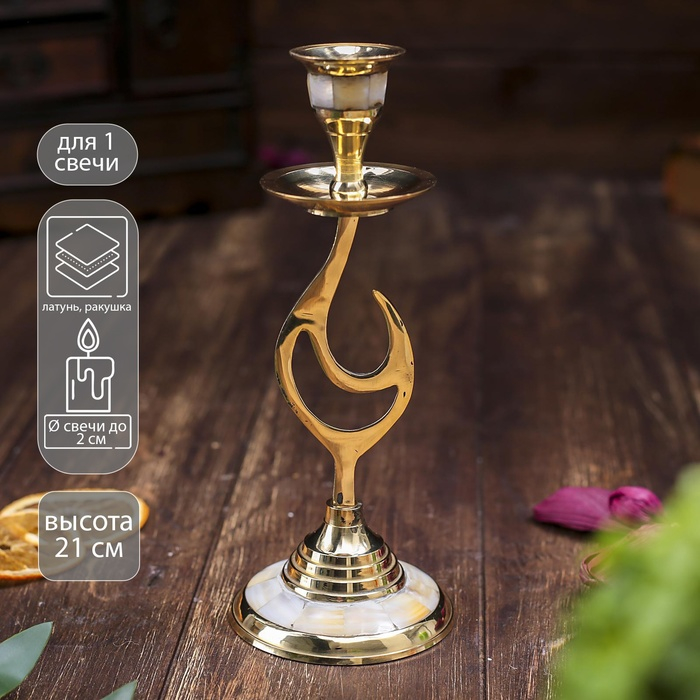 Подсвечник на 1 свечу, изгиб, 21 см, с перламутром