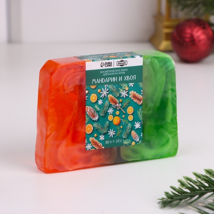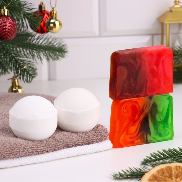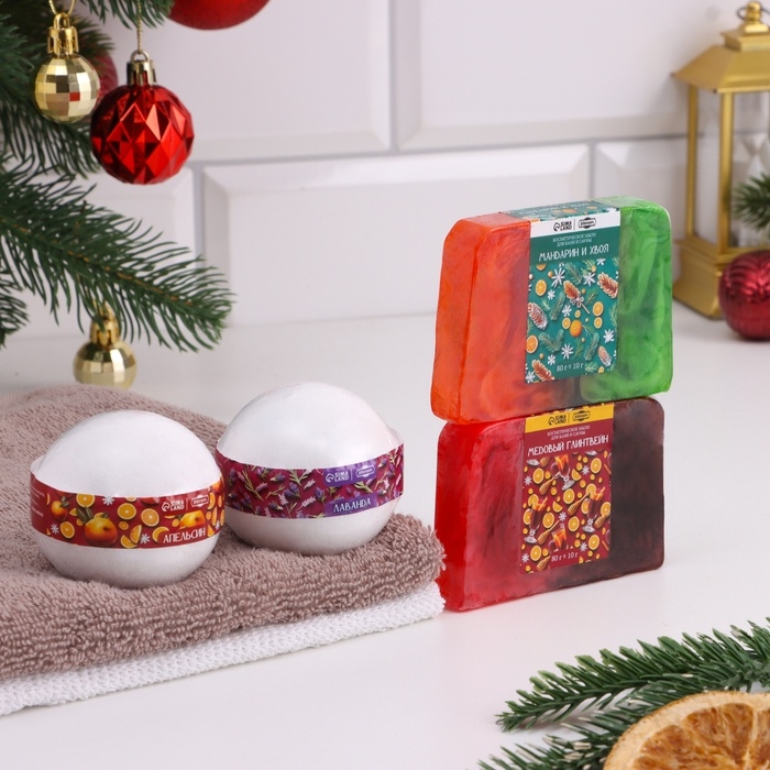 Новый год. Набор 2 бомбочки "Апельсин, Лаванда" и 2 мыла "Мандарин и хвоя, Глинтвейн"
