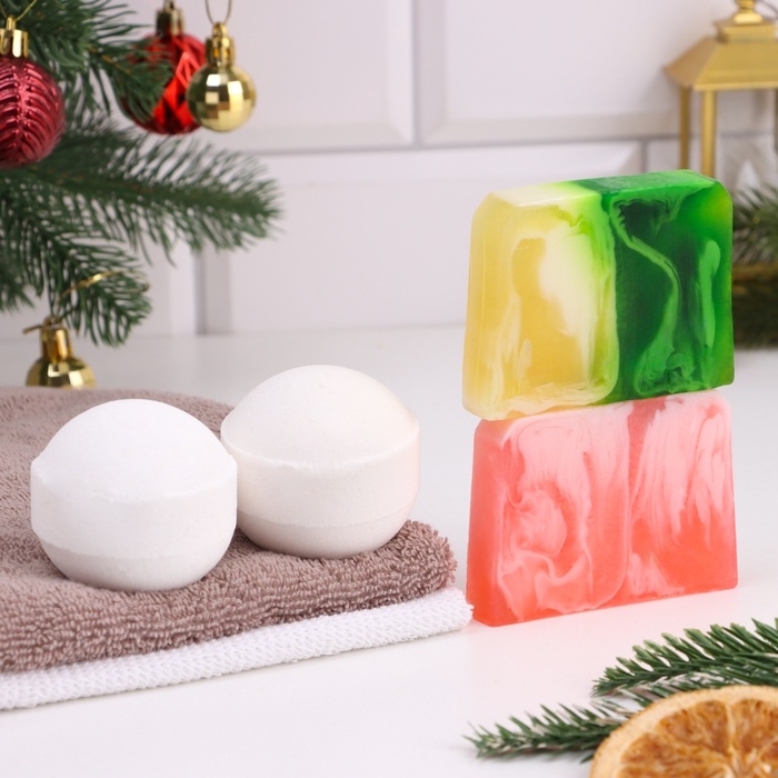 Новый год. Набор 2 бомбочки "Миндаль, Горячий шоколад" и 2 мыла "Шампанское, Яблоко" 1064326
