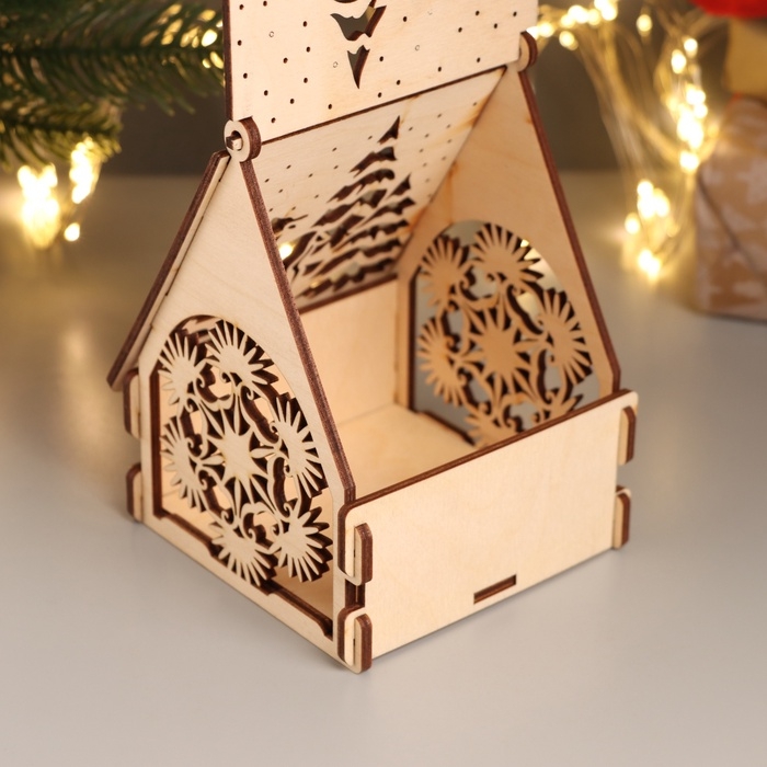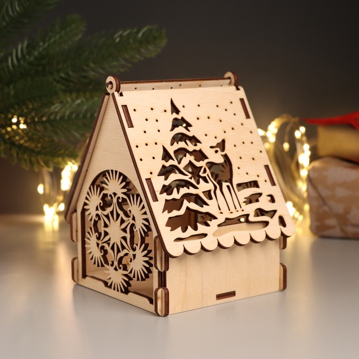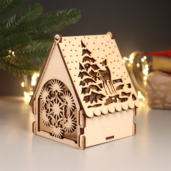 Новогодняя шкатулка-домик "Оленёнок" 12х10х13,5 см (Новогодний набор 7 деталей)