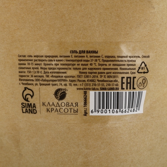 Соль для ванны с ароматом сладкого персика, 150 г