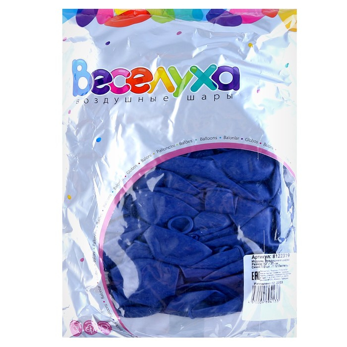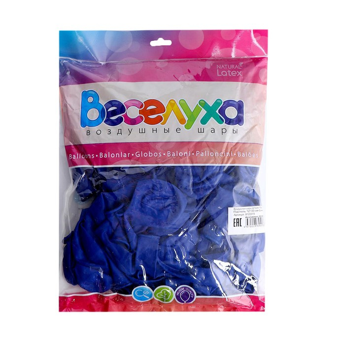 Шар латексный 12", пастель, набор 100 шт., цвет синий