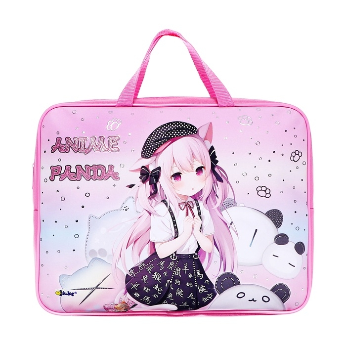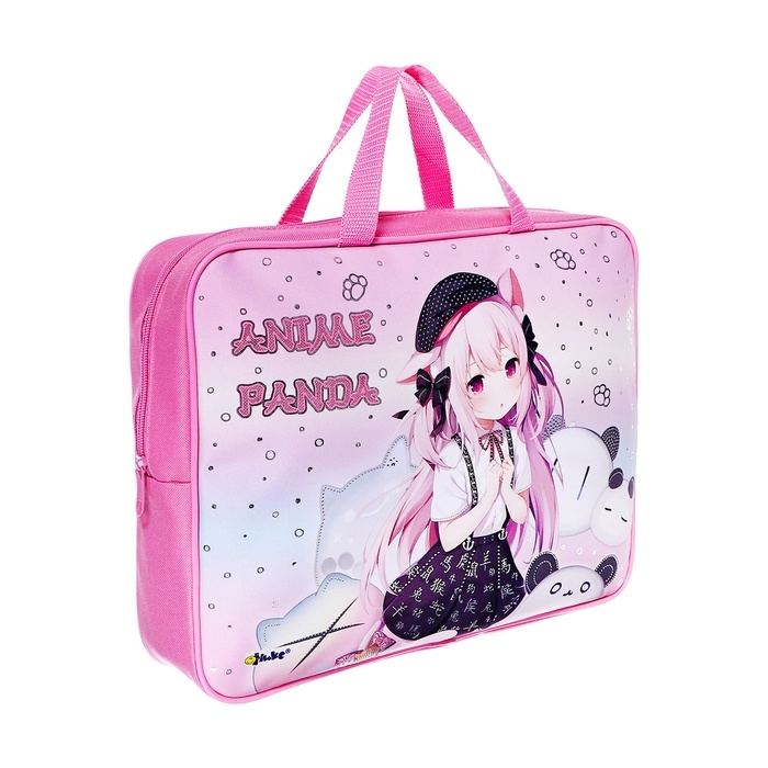 Папка с ручками текстиль А4, 350 х 265 x 80 мм, ПМД 4-22 "Аниме с пандами" (объемный 3D-рисунок с эффектом металлика)