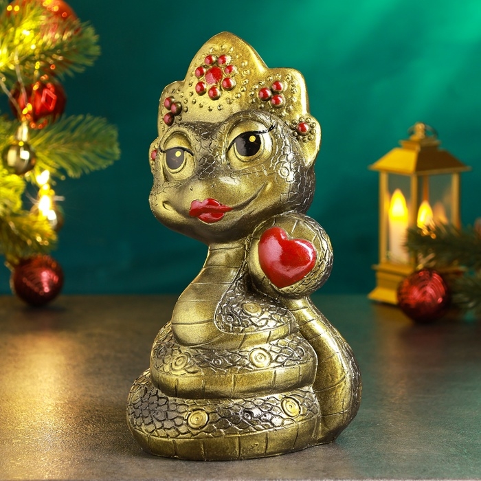 Новый год. Символ 2025. Копилка "Змея в кокошнике" черный, золото, 23см