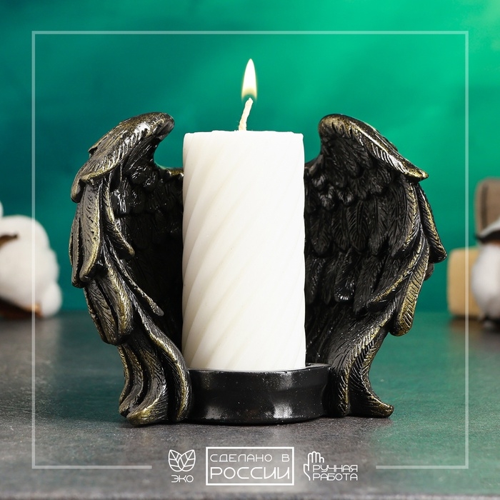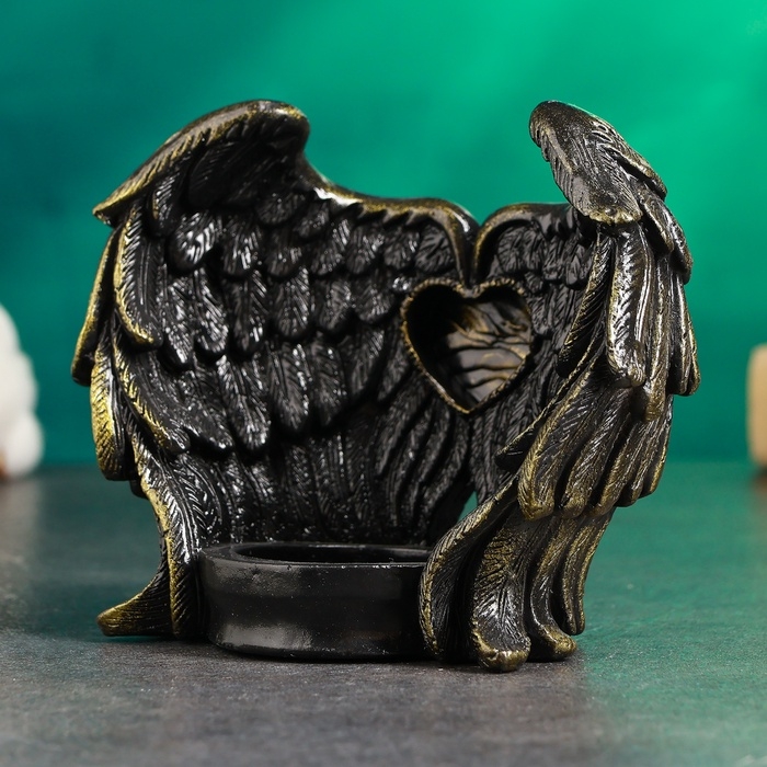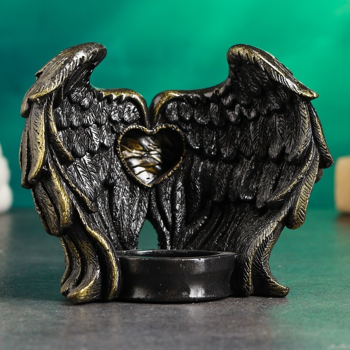 Подсвечник "Крылья ангела" черный с золотом, 12см