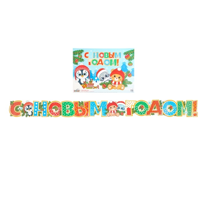 Набор для оформления "Новый Год!" 13 деталей, длина гирлянды 180 см, 68 х 41 см