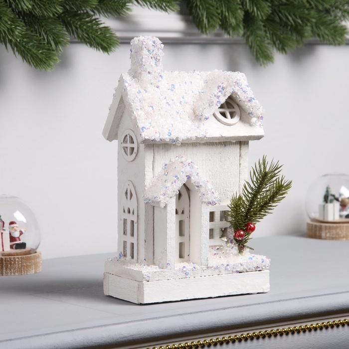 Фигура деревянная "Домик белый", 24х15х7 см, 3 LED, батарейки AAx2 (не в комплекте), свечение теплое белое