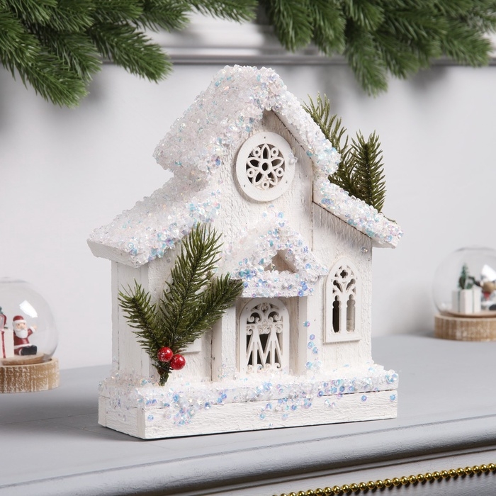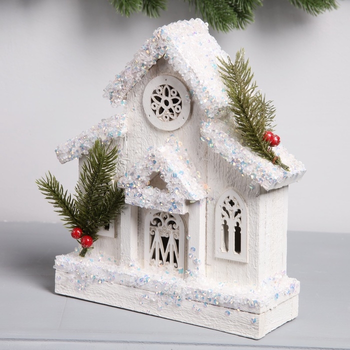Фигура деревянная "Домик белый", 24х20х7 см, 5 LED, батарейки AAx2 (не в комплекте), свечение теплое белое