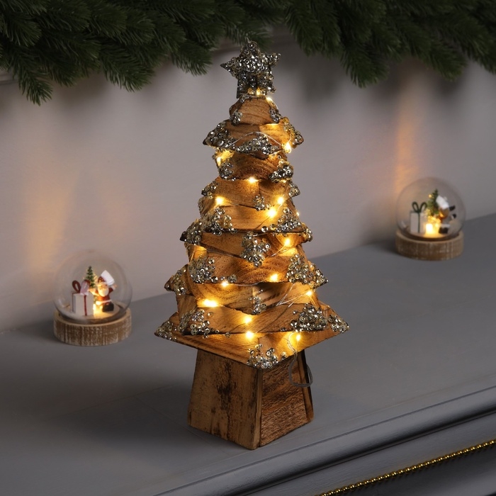 Фигура деревянная "Ёлочка", 33х17х17 см, 50 LED, батарейки AAx2 (не в комплекте), свечение теплое белое