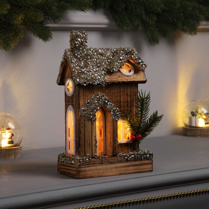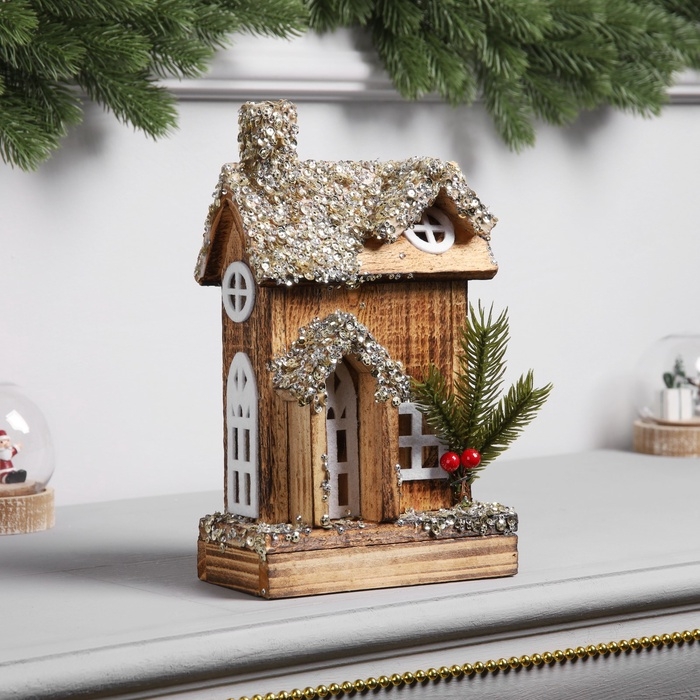 Фигура деревянная "Изба", 24х15х7 см, 3 LED, батарейки AAx2 (не в комплекте), свечение теплое белое