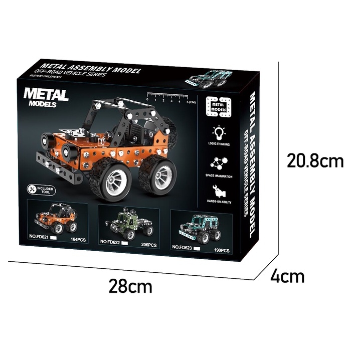 Конструктор металлический «Внедорожник», 190 деталей