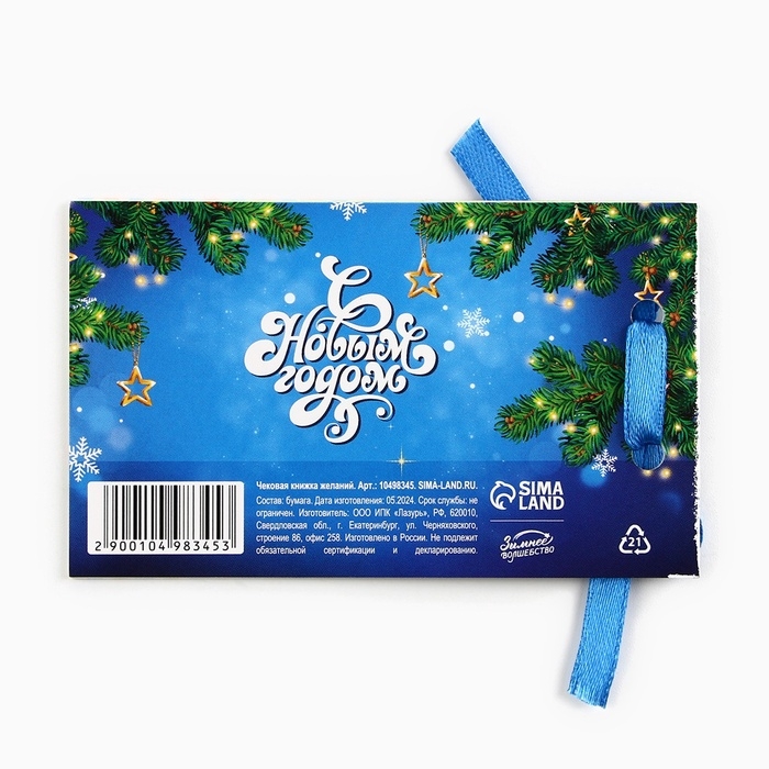 Чековая книжка желаний "Новогодняя змейка", 10 х 6 см